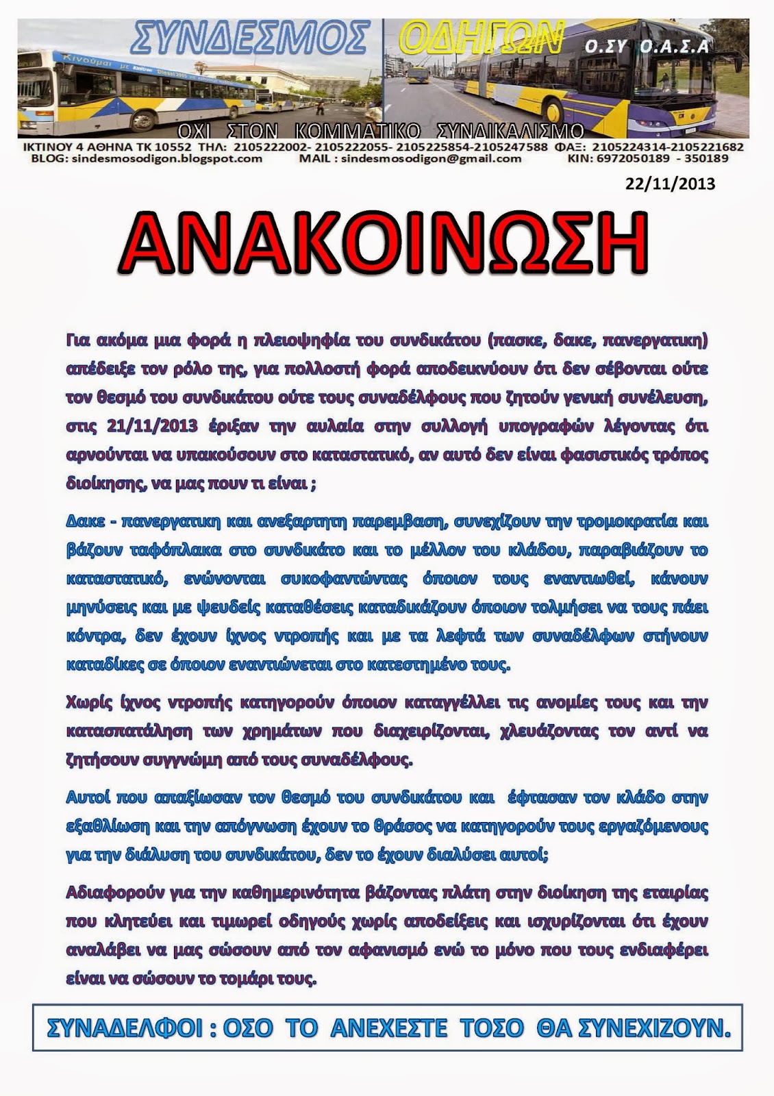 ΑΝΑΚΟΙΝΩΣΗ 22/11/2013